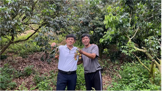 驻马踏镇帮镇扶村工作队队长王和锋在香蜜早荔枝原种繁育基地现场直播带货