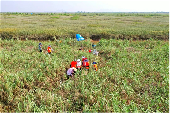 珠海海洋中心典型生态系统调查团队在鹤洲开展盐沼生态系统碳储量调查