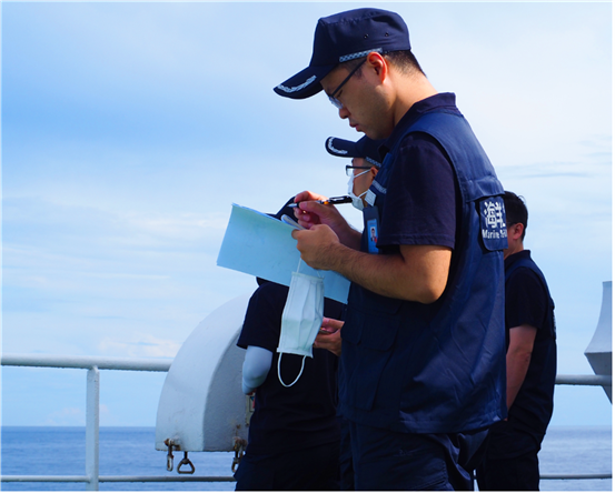 2022年,受生态环境保护政策管控新要求及广州新冠疫情双重影响,部分项目单位集中在第四季度提交申请,年底项目提交数量显著提升,技术审查工作压力倍增。林纪江不怕苦不怕累,加班加点,积极沟通局审批部门、项目单位,及时指导修改、复审材料,同时组织技术组强化监管能力,对申请作业船舶轨迹全覆盖“云”监管,居家封控的一个多月期间,累计技术审查、“云”监管13个项目、40余条船,充分展现了南海局高效的行政服务能力。海底电缆管道外业核实工作受人员、船舶、环境等的影响较大,监管难度远大于陆地,林纪江曾与同事不惧风浪与眩晕,搭乘小渔船飘摇近一个小时奔赴离岸10多公里处的海缆铺设船进行现场监管。