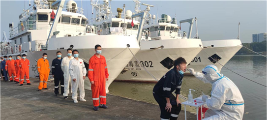 船舶管理组张岳洪、王涛、温永安等同志在交通受阻、人员不足、供应链受限的情况下,克服困难做好船舶物料、食品药品等补给工作,保障了“向阳红31”船于11月6日顺利出航;由于社区防疫人手紧张,船医朱波当仁不让承担起船员核酸采样工作;自10月26日起,在东莞中联码头值班的岸基值班员刘洋每天匆匆吃完早饭,便赶到值班室马不停蹄地投入到紧张的工作中。“这些天,我和值班的船员都在连轴转,虽然30多天没回家,也会想念家人,老婆还有一个月就要临盆了,但在这特殊的时期,再苦再累我都觉得值!”许多船员及岸基人员舍小家顾大家,坚守岗位一线,疫情之下,船舶能够正常运转、顺利出航,离不开他们的奉献与坚守。