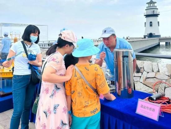支部党员向社会公众科普验潮站工作原理,介绍相关仪器设备