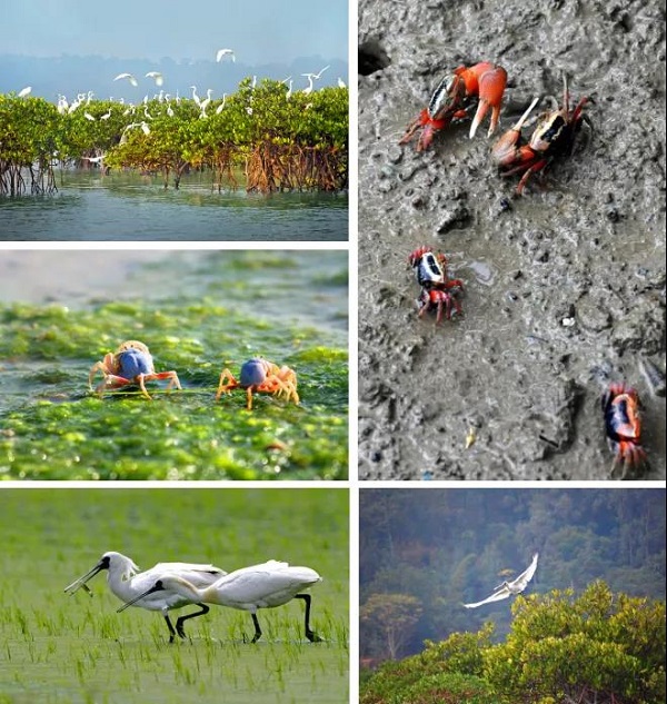 中国有红茶、绿茶、乌龙茶、黄茶、黑茶、白茶六大茶类;也有皖派、闽派、京派、苏派、晋派、川派六大建筑派系,更有北京、西安、杭州、南京、洛阳、开封六大古都。但是今天我们不是要去逛古都,赏建筑,品茗茶,我们要去那碧霭霭的海上森林撑木船,去奇趣的滩涂观螃蟹和弹涂鱼,去天然生态氧吧吸负离子,去捕捉“落霞与孤鹜齐飞,秋水共长天一色”的美景!