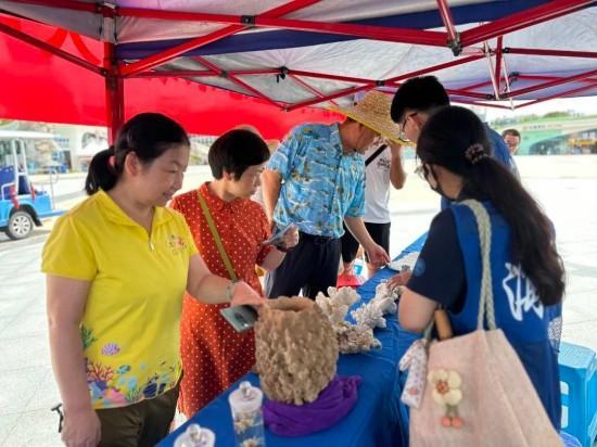 活动现场,形态各异的珊瑚标本和鱼类标本吸引了众多游客和市民驻足观看。中心科普人员不仅介绍了“世界海洋日”和“全国海洋宣传日”的由来,更结合精美的宣传图册,生动科普了红树林、珊瑚礁、海草床等典型海洋生态系统的重要性。围绕展位上的标本,科普人员讲述了它们的由来和制作过程,并通过深入浅出地讲解“虫黄藻”与珊瑚的共生关系,揭开了珊瑚绚丽色彩的奥秘,让游客们大开眼界。