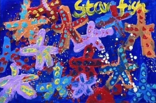 梦幻海底世界:以“Starfish(海星)”为主题,形态各异、色彩缤纷的海星是画面主角,大胆的用色、自由的造型,是孩子眼中奇妙海洋世界的生动呈现。孩子们用画笔描绘出心中最美的海洋乐园,那里生机勃勃,纯净又美好。