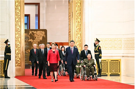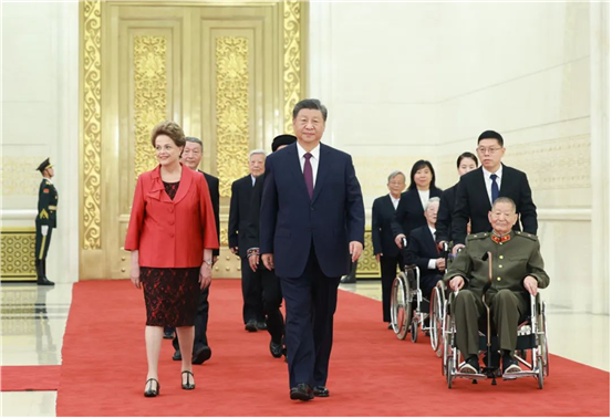 习近平指出,75年来,世界上有很多与中国人民志同道合、风雨同舟的老朋友、好朋友,今天被授予“友谊勋章”的迪尔玛·罗塞芙女士就是其中的杰出代表。中国人民永远不会忘记那些为中国发展、增进中国人民同各国人民友谊作出突出贡献的国际友人。中国人民愿携手世界各国人民,维护世界和平,促进共同发展,推动构建人类命运共同体,开创人类更加美好的未来。