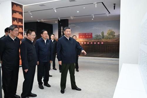 11月4日至6日,中共中央总书记、国家主席、中央军委主席习近平在湖北考察。这是4日下午,习近平在孝感市云梦县博物馆考察。新华社记者 燕雁 摄