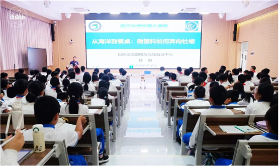 为进一步普及海洋科学知识,提升青少年海洋保护意识,近日,南海海域海岛中心科普团队走进广州市海珠区六中珠江中学,开展了一场题为“从海洋到餐桌:微塑料如何奔向牡蛎”的科普课堂,通过趣味实验互动与生动的科普讲解,带领同学们踏上了一场别开生面的微塑料探秘之旅。