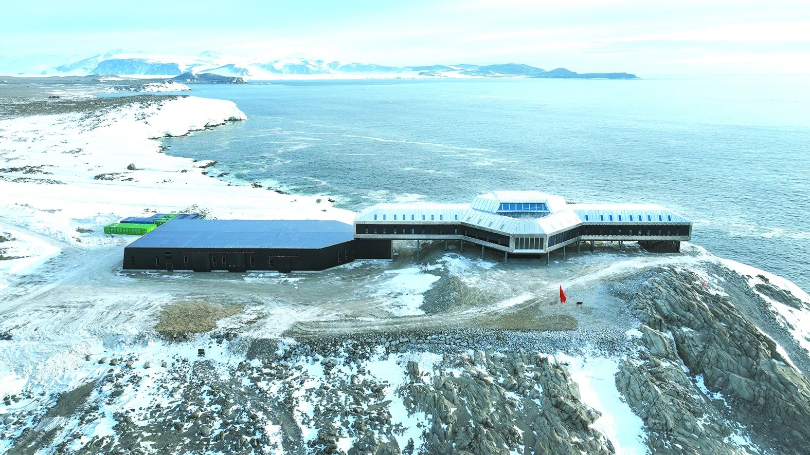 秦岭站建设秉持绿色理念,执行“工完、料净、场地清”等一系列措施,确保站区周边生态环境不污染、不破坏。同时,秦岭站充分考虑南极特定的自然环境条件和后勤保障特点,采用绿色技术和集成化空间体系,各功能区高度集成、彼此衔接,可接待度夏考察人员80人、越冬考察人员30人,是一座智能先进、低碳环保的科学考察站。
