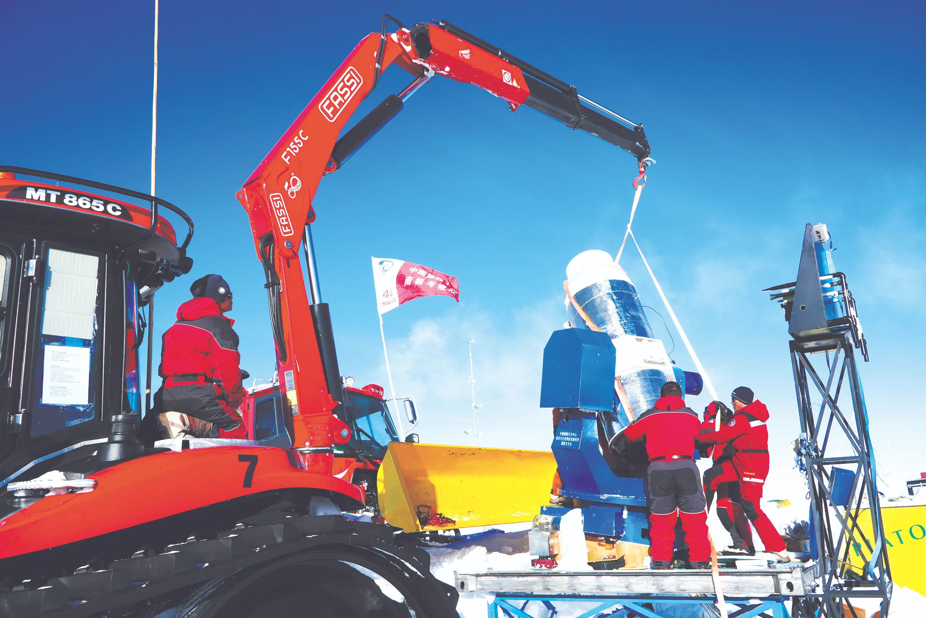 2023年12月16日,中国第40次南极考察队昆仑站(泰山站)队出征,向着南极内陆腹地挺进。考察队员经受了最严酷环境的考验,抵达位于冰穹A地区的昆仑站,首次开展了近红外天文观测以及近地空间环境全时段监测,冰穹A地区太赫兹天文谱线观测首次实现了谱线成图观测,获取表层雪、雪坑、地层大气气溶胶和浅冰芯等样品,并对我国自主研发的昆仑站无人值守能源系统进行升级改造。在格罗夫山区域,考察队通过旋翼无人机和复合翼无人机对梅森峰、哈丁山等进行航测,采集了裸岩、积雪和冰裂隙等数据,为研究格罗夫山陨石分布及地形提供宝贵的资料。