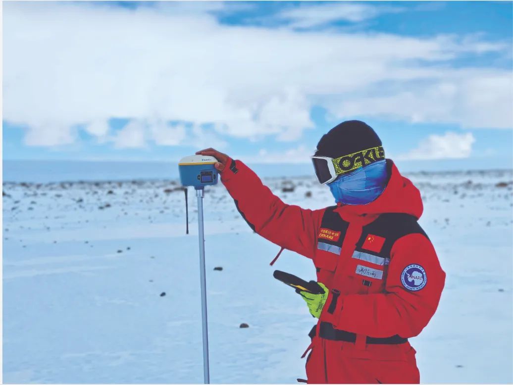 考察队员进行全球导航卫星系统测量。褚馨德 摄