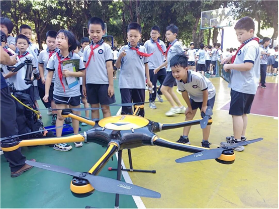 超大的高光谱无人机成为全场焦点。“它能载人吗?”“它有多重啊?”“你们用它做什么啊?”同学们的问题接踵而至,科普人员一一细致解答,并讲解其在海洋观测和测绘中的关键作用。徐浩老师还现场演示了无人机在海洋勘测和巡查中的工作流程,引来现场阵阵惊叹。