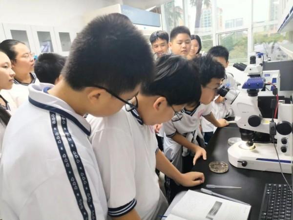 在生物鉴定室,同学们通过显微镜观察各种海洋微生物,惊叹于“微观世界”的奇妙。大家一边观察一边提问,在互动中解锁海洋生态的“隐藏密码”,让“探索海洋”的梦想变得更加具体和生动。