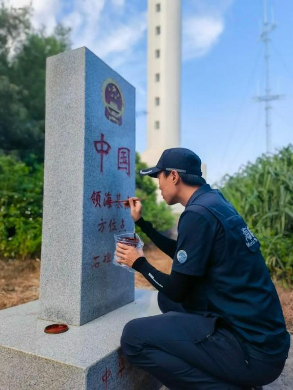 巡查人员对领海基点方位碑进行补色维护